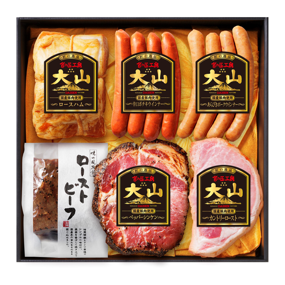 ローストビーフ200g、カントリーロースト300g、ペッパーシンケン300g、ロースハム360g、あらびきポークウインナー120g、辛口ポチキウインナー120g